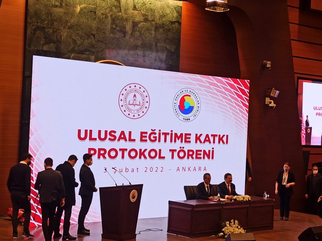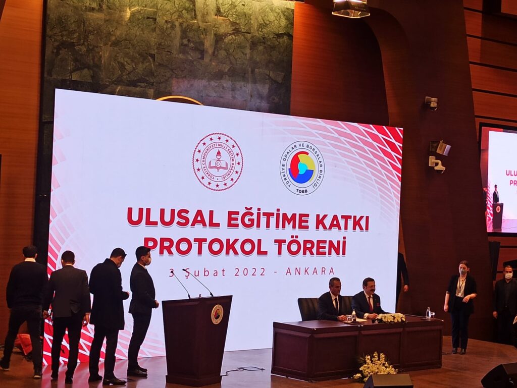 Toplantı kapsamında 81 ilimizde 81 okulun yapımının tamamlanması ve Oda ve Borsalarımızın bulunduğu 154 İlçemize 154 yeni okulun yapılması hususunda Ulusal Eğitime Katkı Protokol’ü ile birlikte imzalar atıldı.